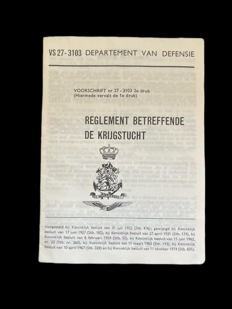 This is a Dutch Military manual which concerns Military Discipline. Check out our YouTube channel below. https://m.youtube.com/results?sp=mAEA&search_query=chase+militaria+