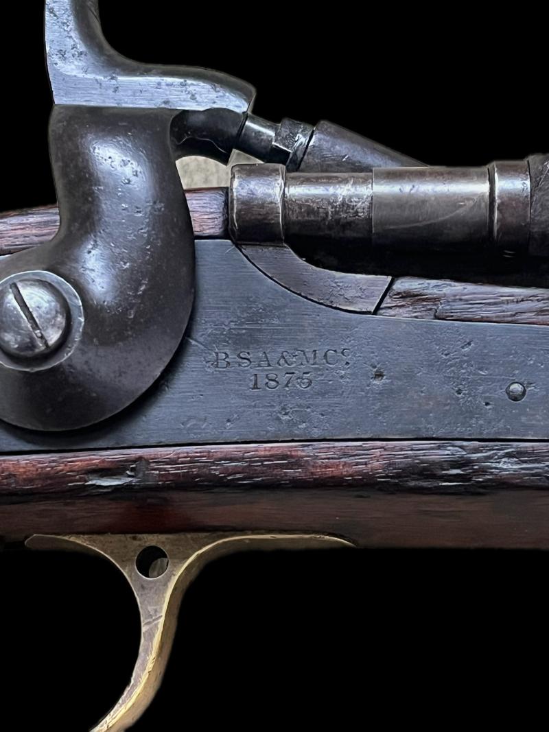 This is a very nice Obsolete British 1875 dated Snider Artillery Carbine Rifle, with an very good bore and excellent action and a .577 calibre, stamped at the top Snider Patent and the makers BSA & MCo with the date 1875 on the side. UK sales only.