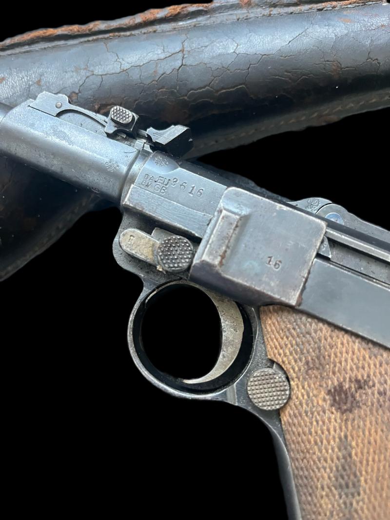 This is a deactivated WW1 German Artillery Luger which is dated 1917 and has full matching numbers including the barrel and magazine, with a DWM toggle and nice original wooden grips, this one also comes with a original 1915 dated holster which has seen better days but it does have a regimental stamp inside but its difficult to make out, also comes with a nice original take down tool, deactivated in 2023 so it has a moving toggle, moving trigger and magazine is able to come out, a nice one to have in the collection. (UK sales only).