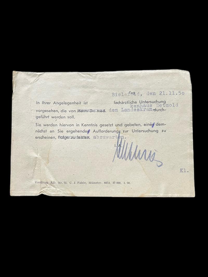 This is a German letter which is dated 1950. Check out our YouTube channel below. https://m.youtube.com/results?sp=mAEA&search_query=chase+militaria+