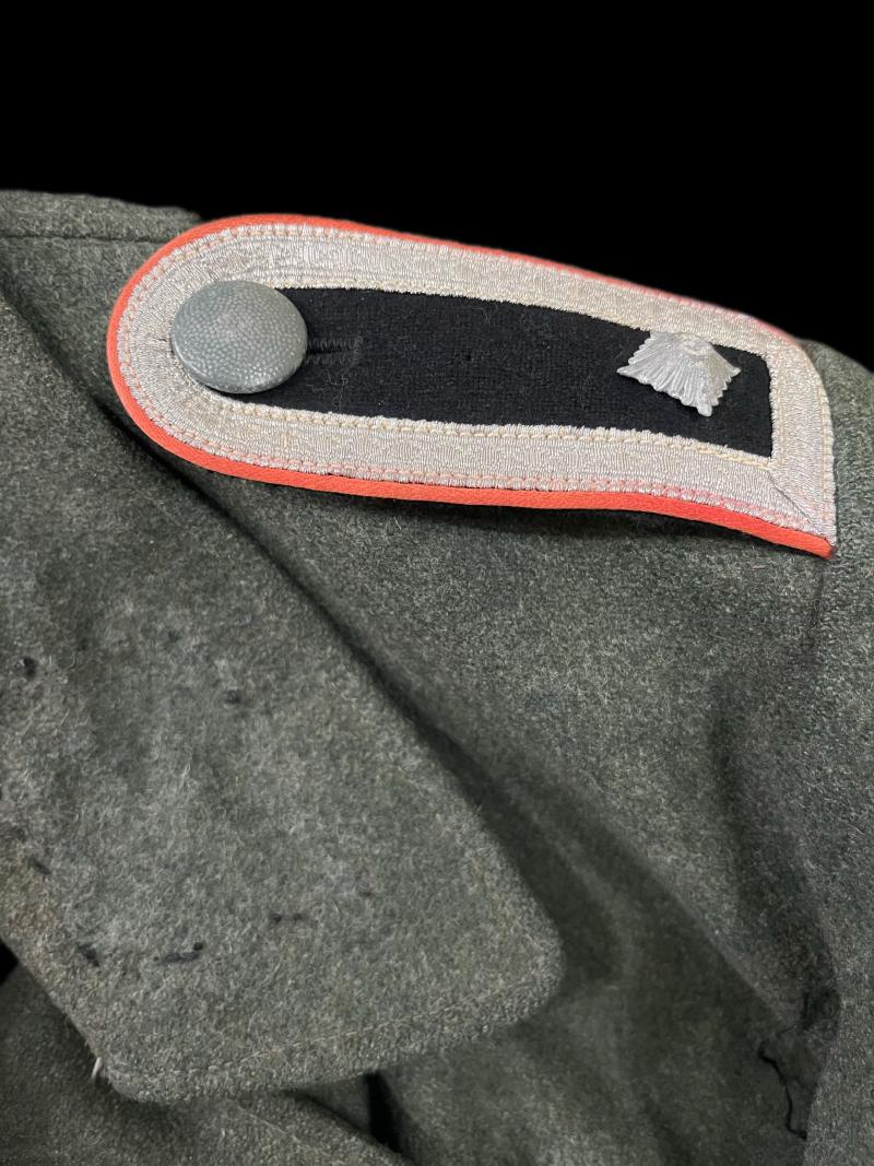 This is a very nice WW2 German SS Stug Wrap which still has its original shoulder boards and award ribbons, all buttons are complete and the condition of the wrap is excellent, the collar patches and the sleeve eagle has been removed, but can still see where they were fitted, the wrap still has its 2 awards loops fitted and the wrap is clearly stamped on the inside with its sizes and SS-BW for Bekleidungswerke.