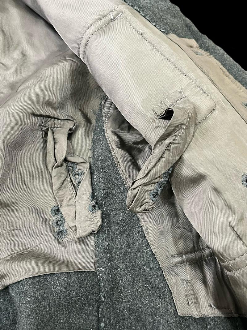 This is a very nice WW2 German EM Wehrmacht tunic which is complete with its EM Wehrmacht shoulder boards, collar tabs and Breast Eagle, the tunic contains one set of loops and all its buttons complete, there's a couple of small nicks to the outside of the tunic but overall in great condition, the interior is also in great condition with some wear to it.