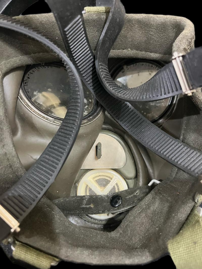 This is a German Drager GM-54 Gas Mask with its harness in good condition, the rubber is soft, lenses could do with a bit of a clean. This one is in a size 2.