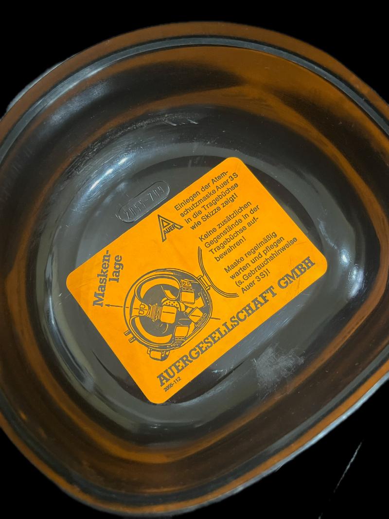 This is a very nice German Auer MSA 3S Gas Mask with its filter and its case, the rubber is soft and the harness is in great condition, the case still has its original label inside as well.
