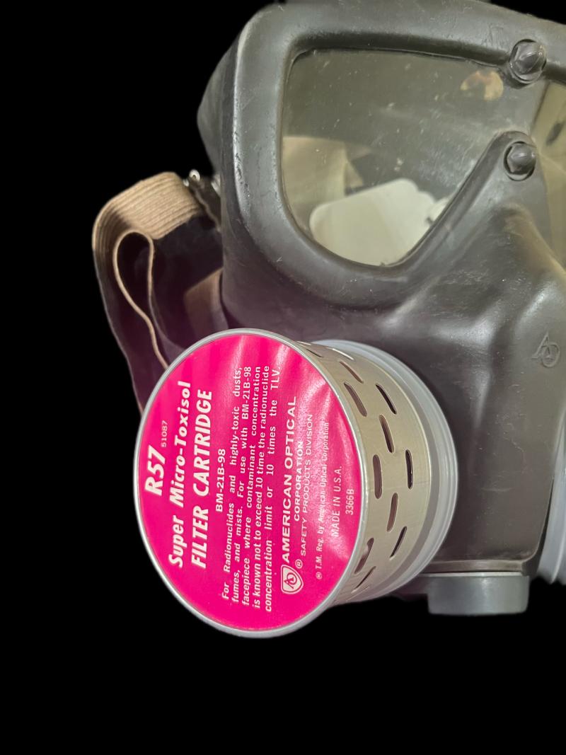 This is a nice U.S BM-21B-98 Gas Mask with Optical R57 filters, the filters are for Radionuclides and highly toxic dusts.