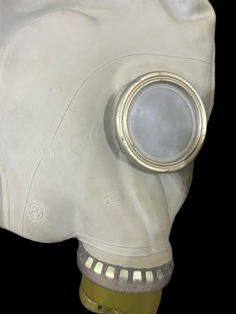 This is a very nice East German Gas Mask set with a Soviet GP-5 Gas Mask, the mask looks to be in a size 2, the set also comes with inner and outer gloves, a cape, a brush and filter.