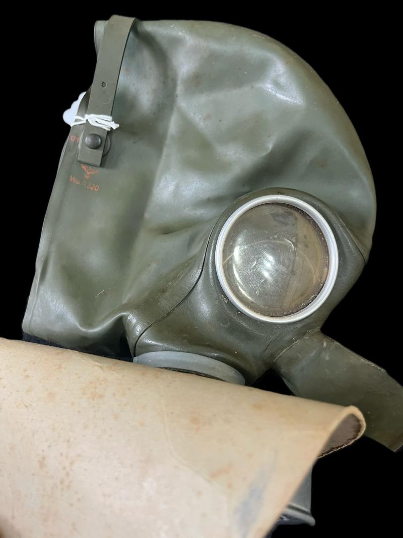 This is a nice WW2 German VM-37 Gas Mask and filter, still has its Cardboard around it, the mask is in good condition.