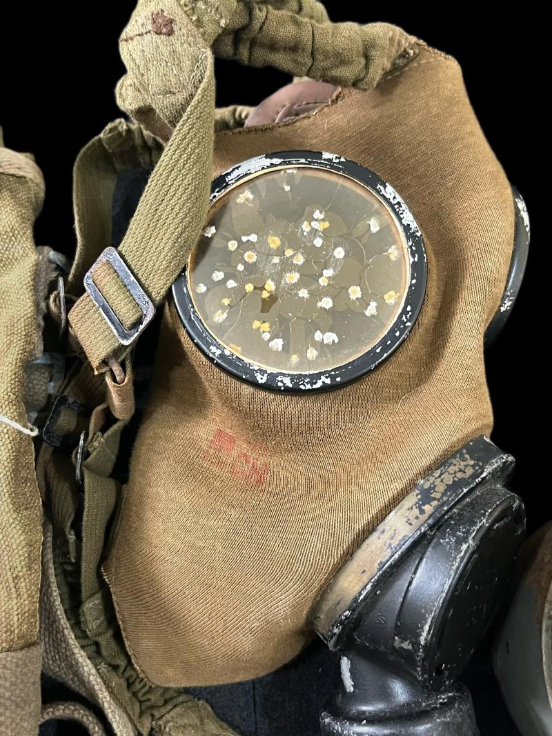 This is a rare Czech Eckhardt gas mask which is dated 1934, the mask itself is in good condition apart from both lenses, also comes with its hose, filter and bag. The bag is a Belgian M1931 Gas Mask bag.