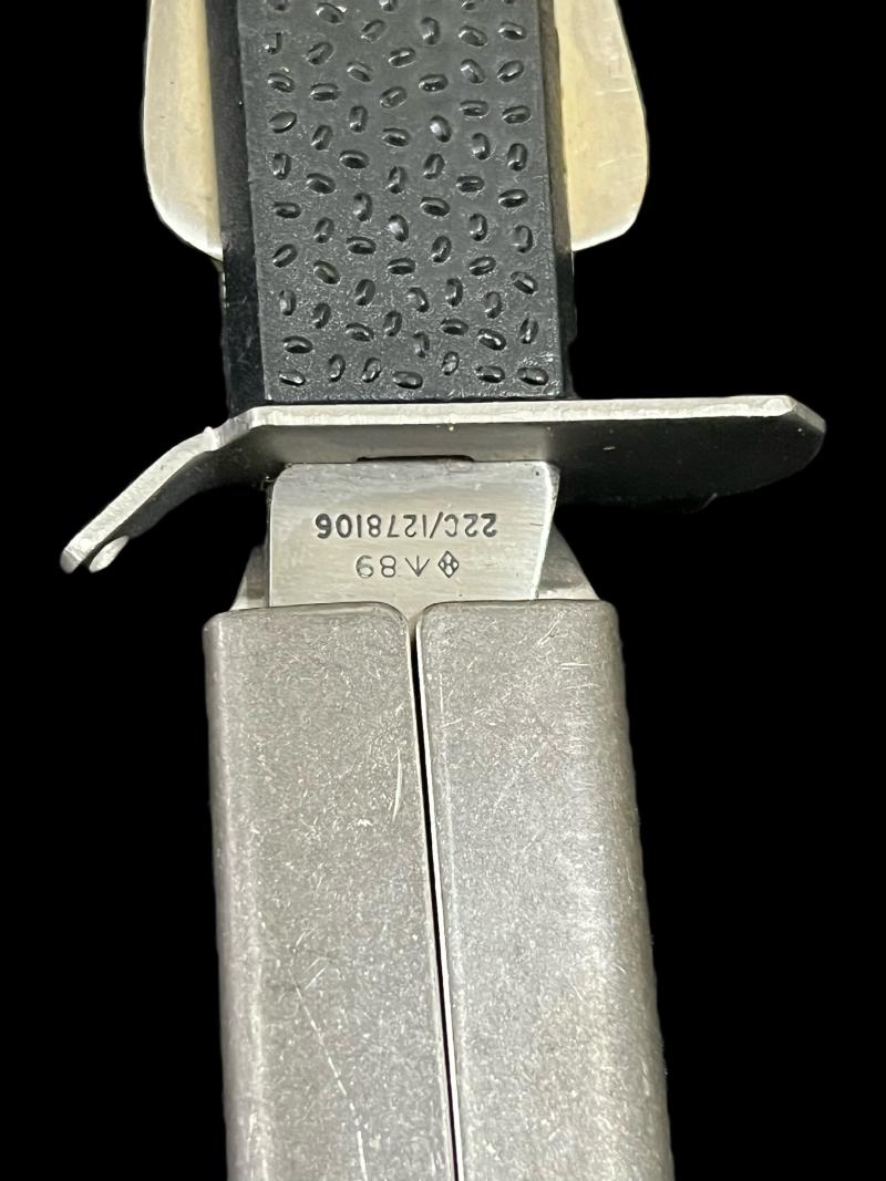 This is a very nice R.A.F Pilot's Flying Suit Mk.III survival knife which is British Broad Arrow stamped and dated 1989. Age Restricted Item. Proof of age must be provided. U.K. Sales Only. (One only).
