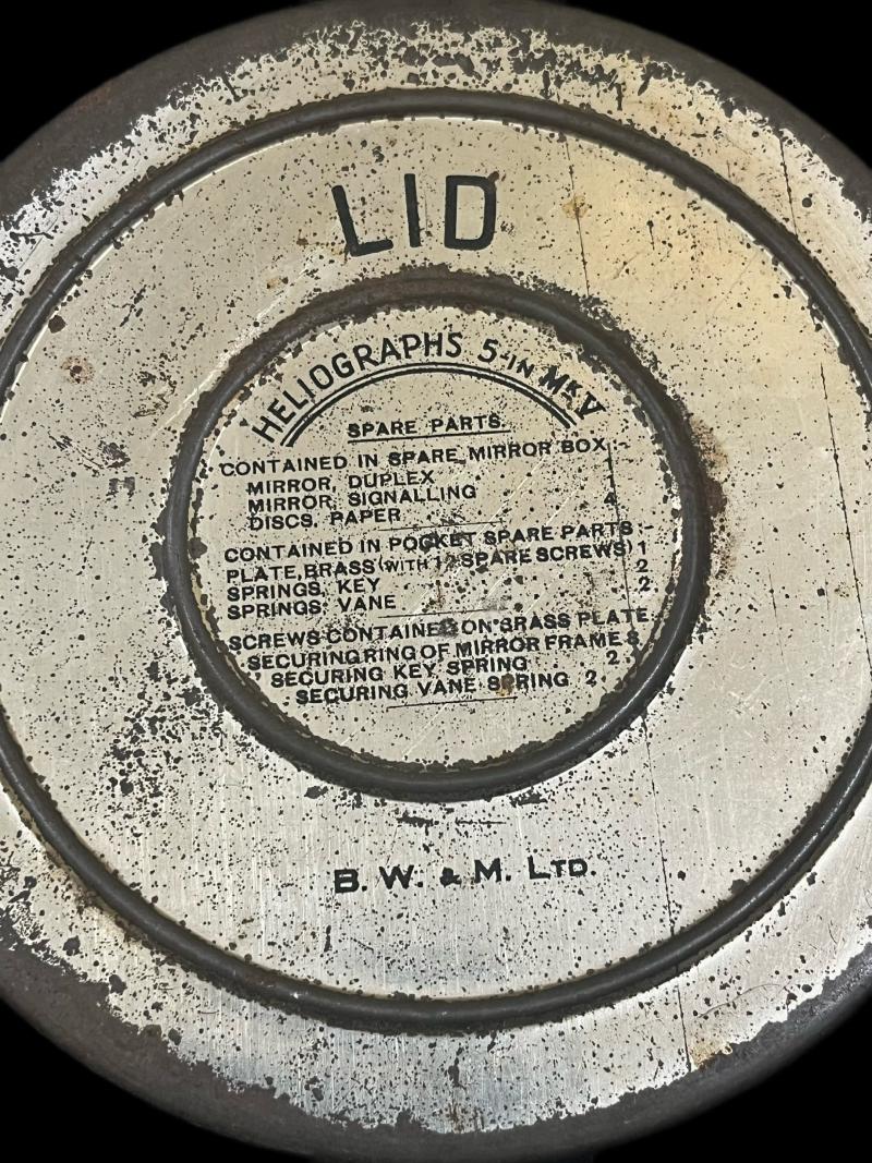This is a very nice British Heliographs 5 In Mk.V spare mirror in its case. Check out our YouTube channel below. https://m.youtube.com/results?sp=mAEA&search_query=chase+militaria+