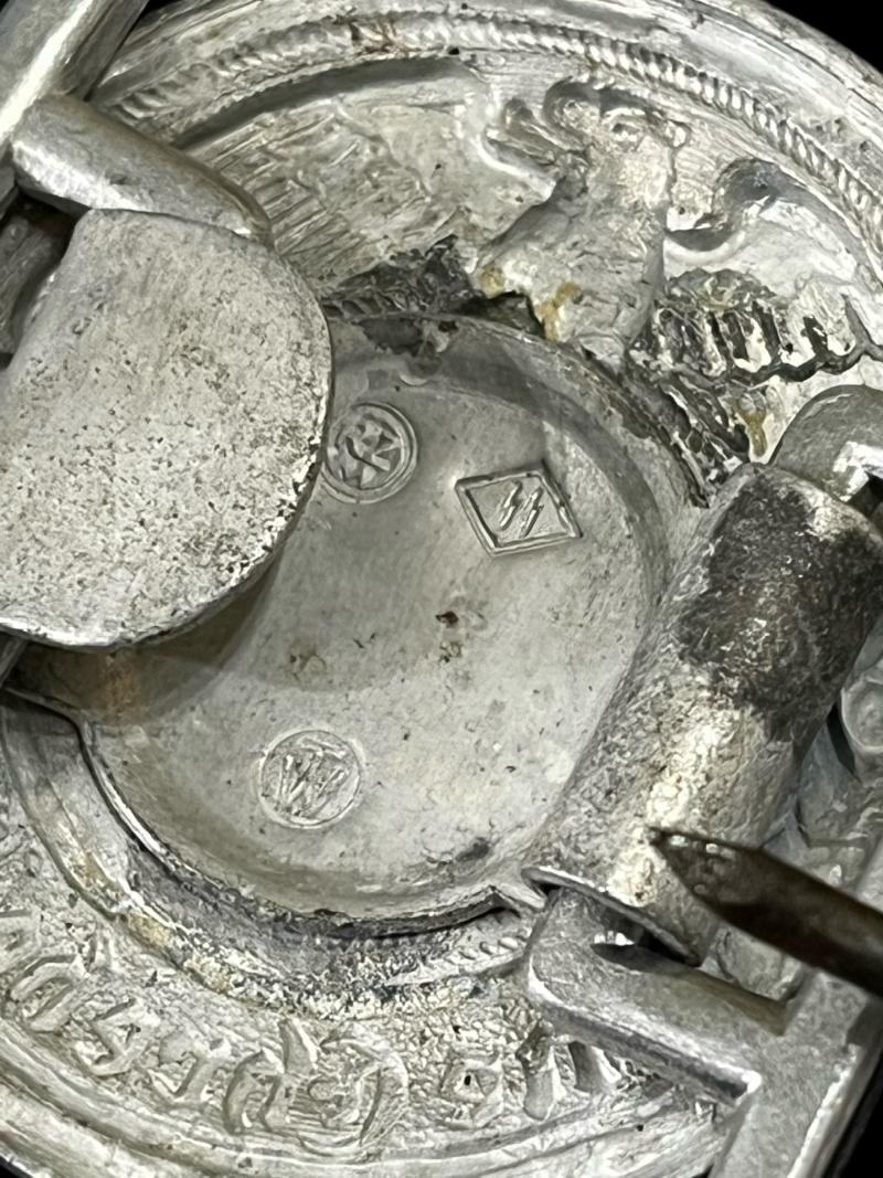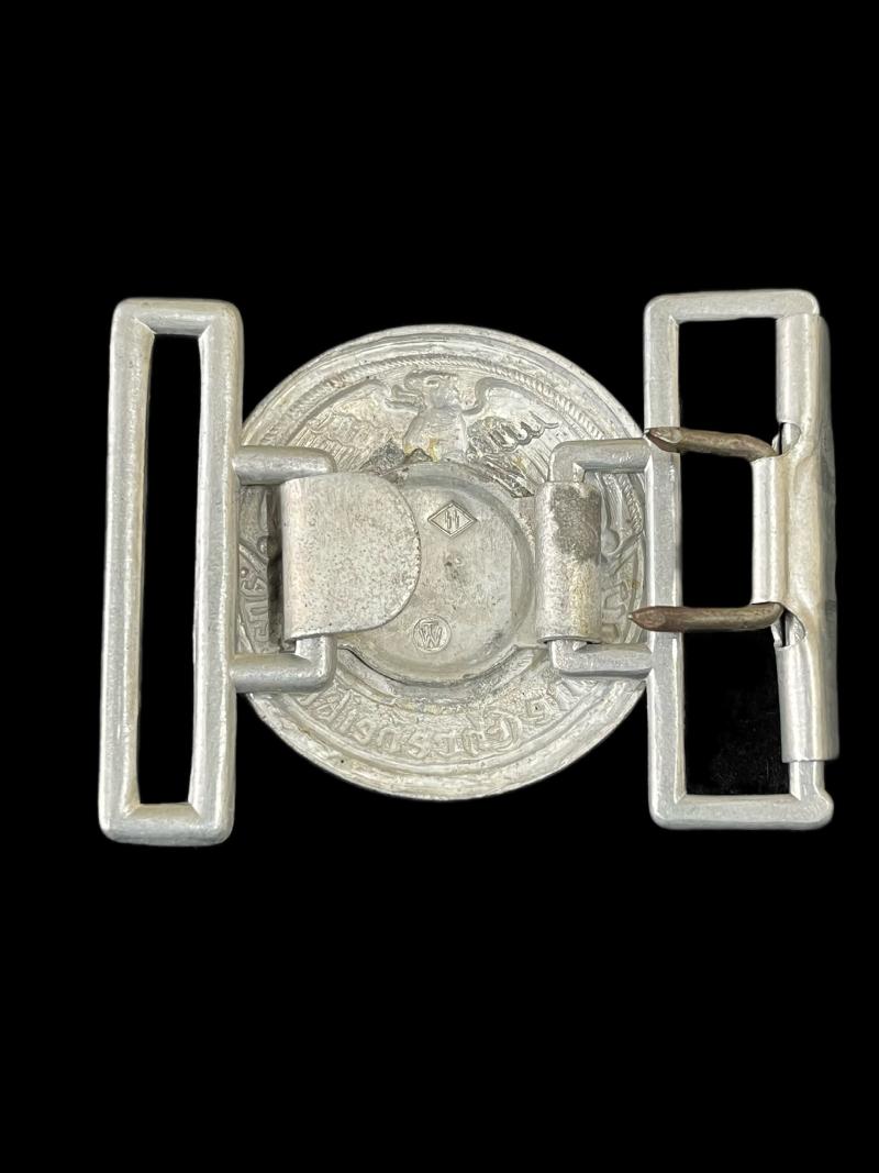 This is a nice and good quality reproduction WW2 German Waffen-SS Officer's belt buckle which is stamped ss rzm and the stamp TW, with the motto Meine Ehre Heist Treue (My Honour is Loyalty.