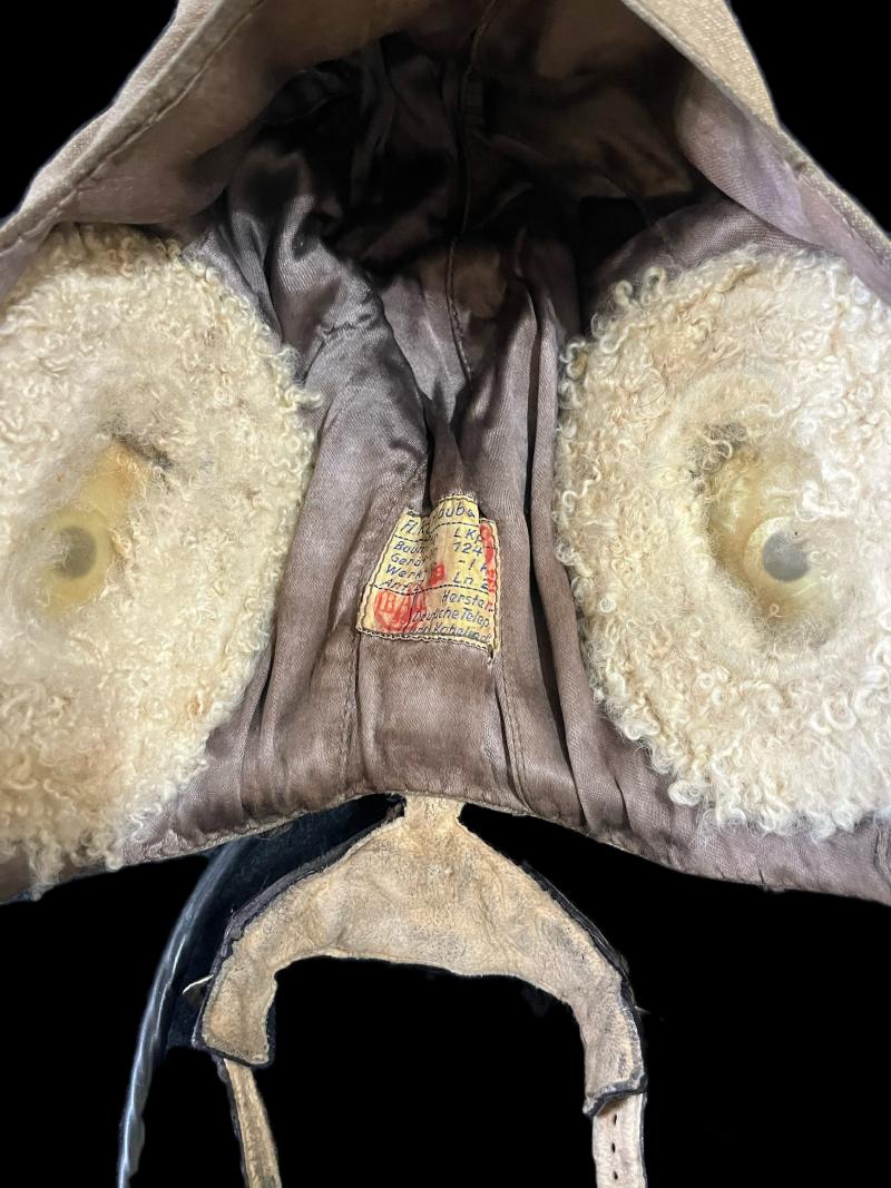 WW2 GERMAN LUFTWAFFE LKP S 101 PILOTS HELMET WITH EARLY THROAT MIC (NAMED EWALD)