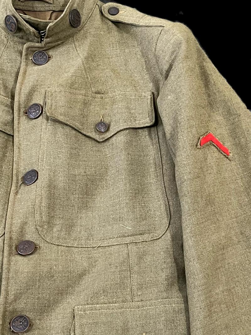 This is a nice WW1 U.S. National Guard tunic fitted with all correct buttons and the National Guard Button on the collar, this tunic is in great condition and looks like its hardly been worn. Approx. 36" chest and 18" under the arm.