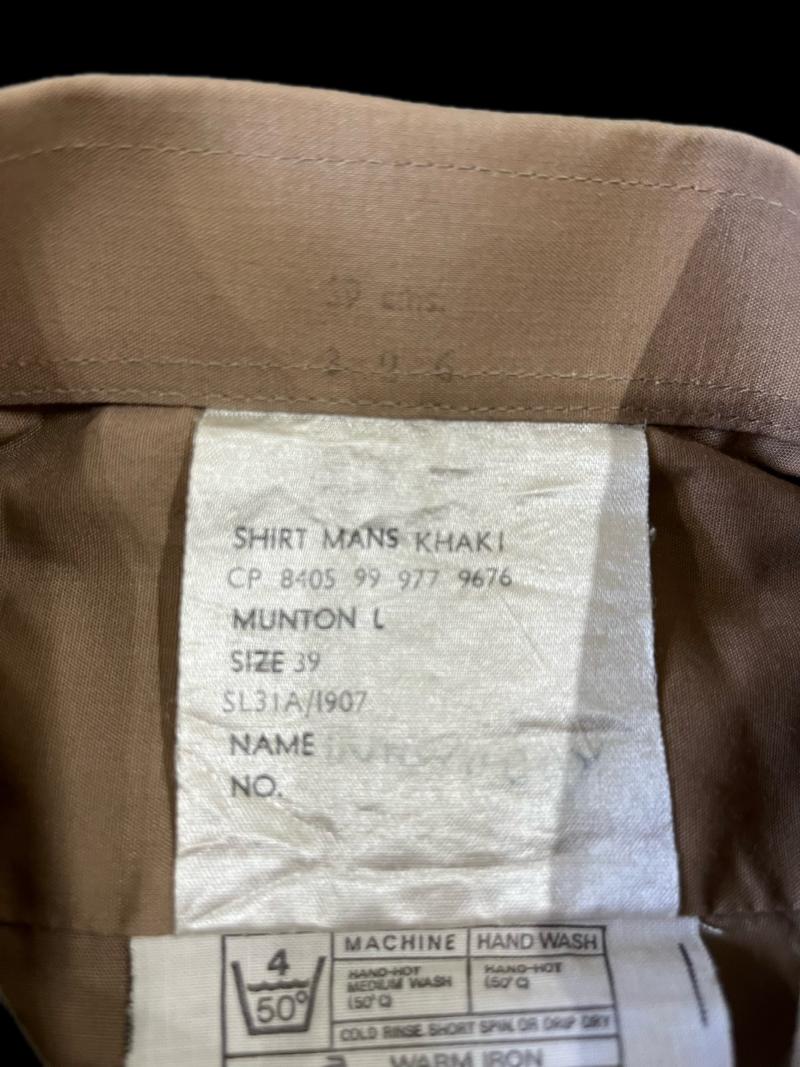 This is a British Army Man's Khaki shirt which has had some insignia removed from the shoulder boards and collars. Approx. size 40" chest and 19" under the arm.