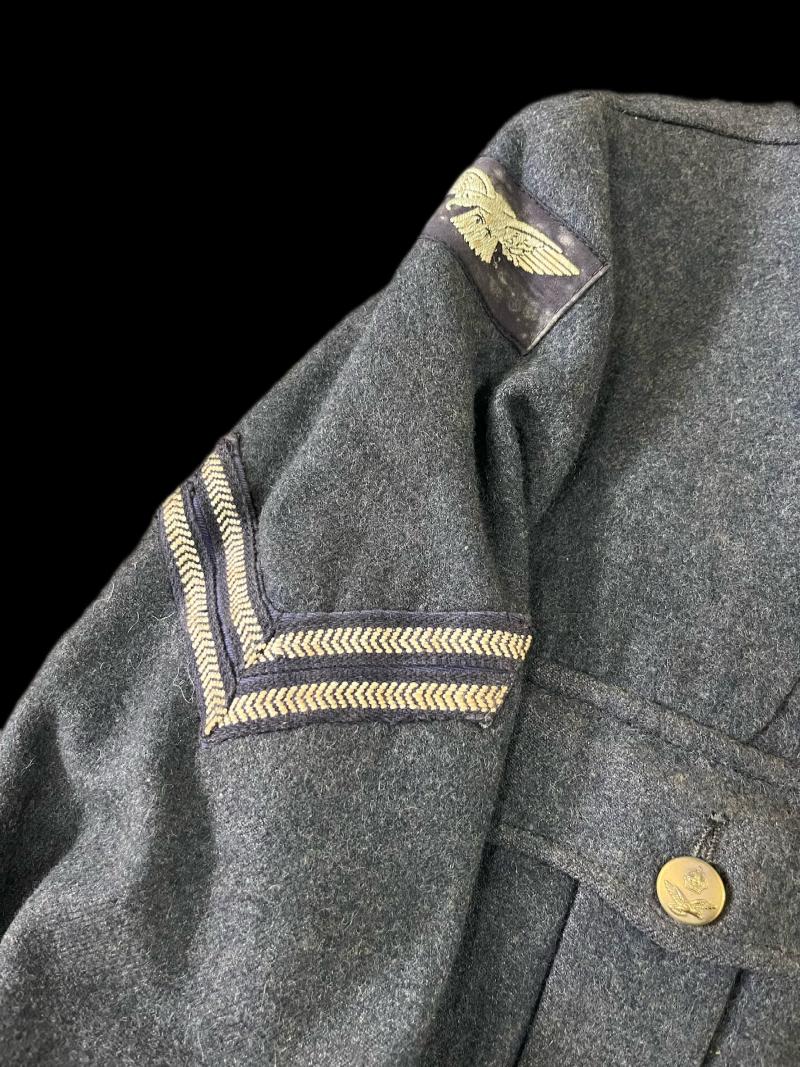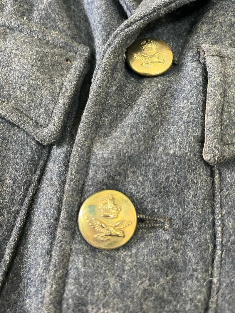 This is a nice worn WW2 RAF Jacket with all Kings Crown Brass button complete, the jacket is worn and has some moth damage on the back at the top as can be seen in the pictures and also a couple of other small areas but would make a great display, the label is missing on the inside so I have no idea of the date, Approx. 36" chest and 18" under the arm.