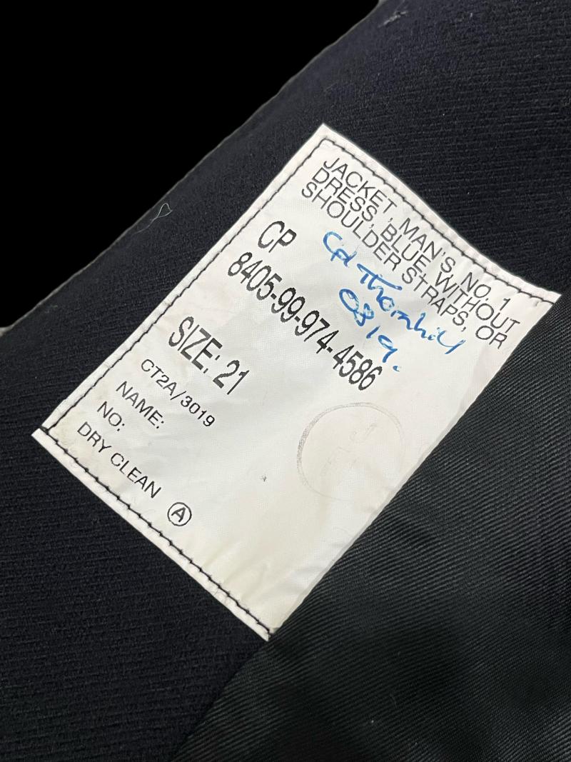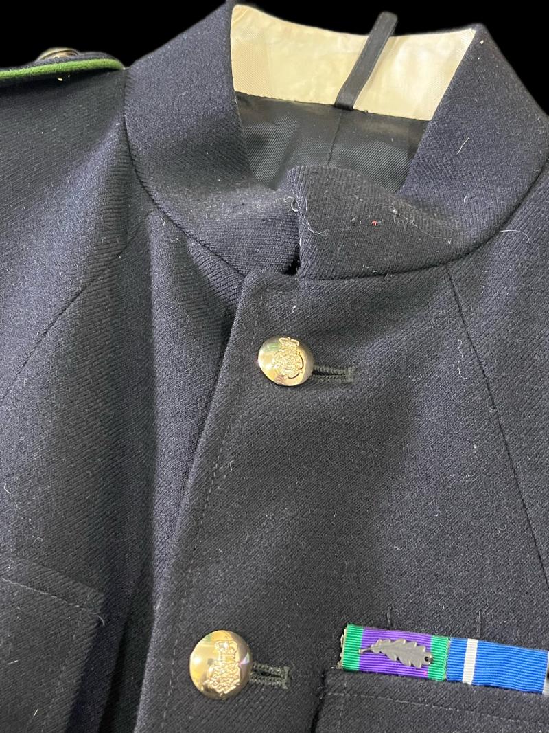 This is a nice British Army No.1 Dress Jacket without shoulder straps with all buttons complete and in nice condition, Also fitted with a ribbon bar and Warrant Officer Class 1 Sleeve patch. Approx. size 34" chest and 18" under the arm.