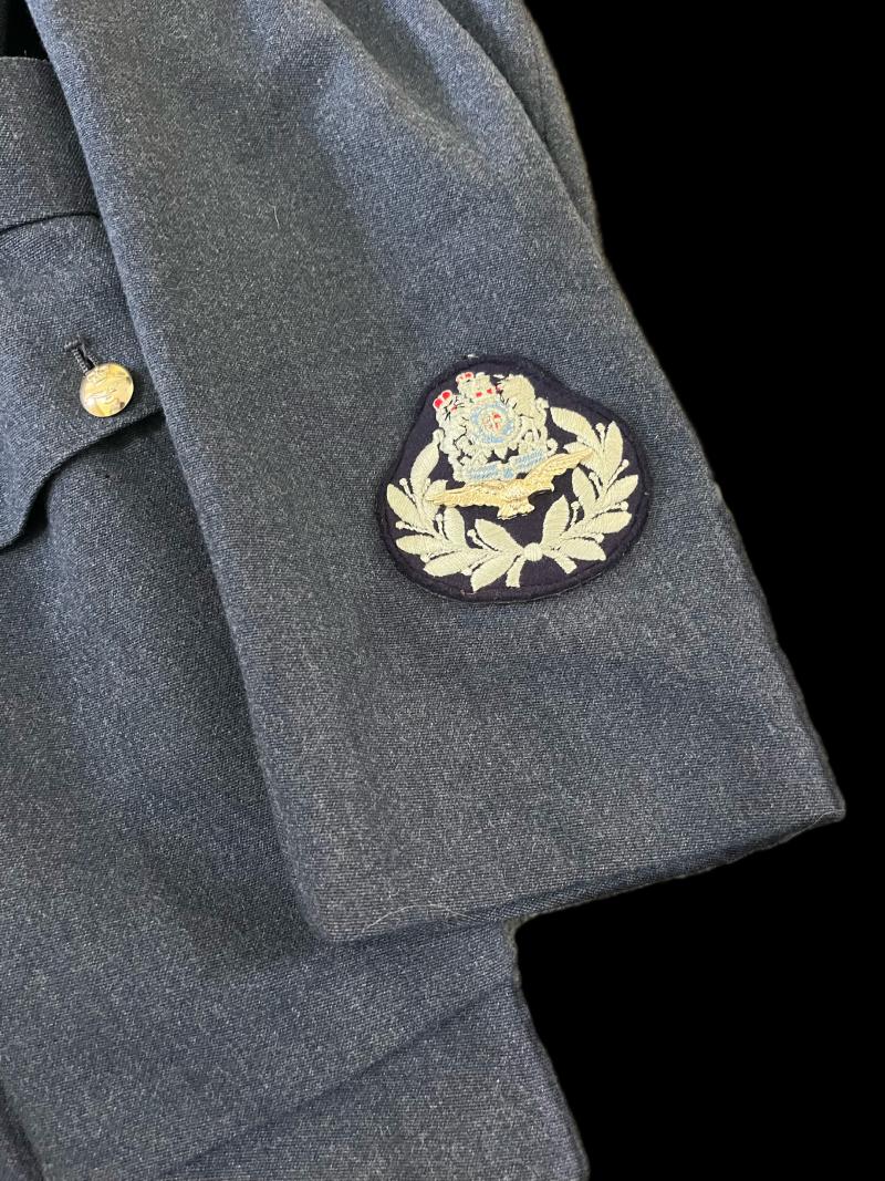 This is a RAF No.1 Dress Jacket with its lower button missing and the Load Master insignia being damaged, around the left cuff there is some fraying otherwise the rest of the tunic is in nice condition with its belt. Approx. size 40" chest and 20" under the arm.