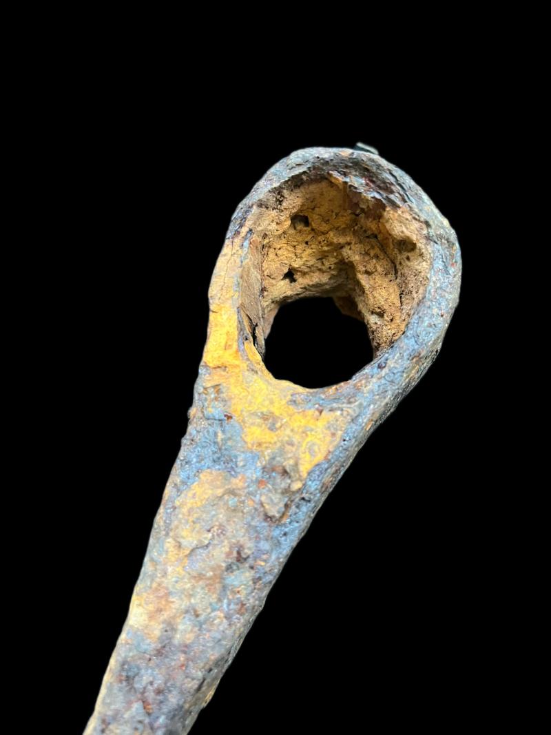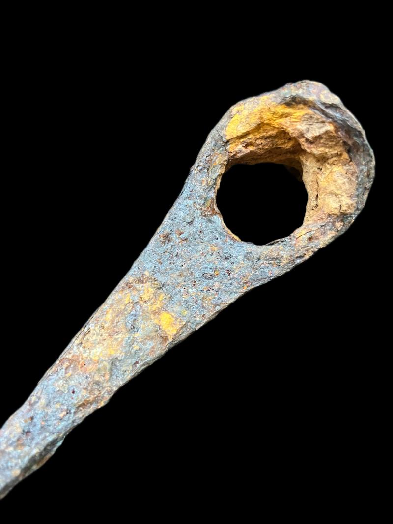 This is a nice 8th to 10th Century Viking Battle Axe head with a curved blade, which measures about 18cm long. Found around York towards Monks Cross area.