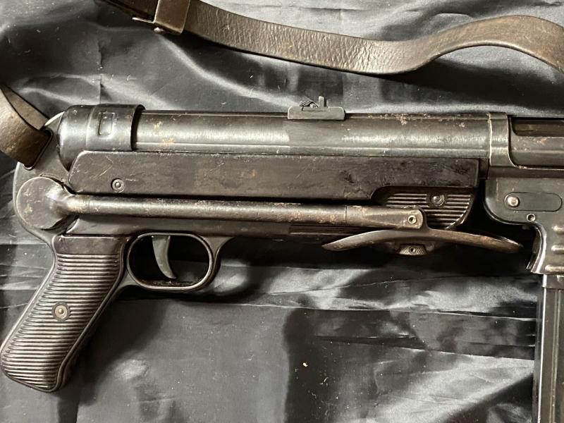 For sale to customers outside the European Union Only. A very nice rare Germanic MP40 sub-machine gun this was deactivated in 1989 so even the barrel is able to come out, which is maker marked "bnz" for Steyr-Daimler-Puch AG and dated 1942. The MP40 is stamped throughout of Third Reich era proof markings ( Waffenampt ) and also the barrel being able to come out makes this a really rare MP40. SS stamped but I can’t confirm authenticity of the stamping hence the price.UK sales only. Please email before purchasing.