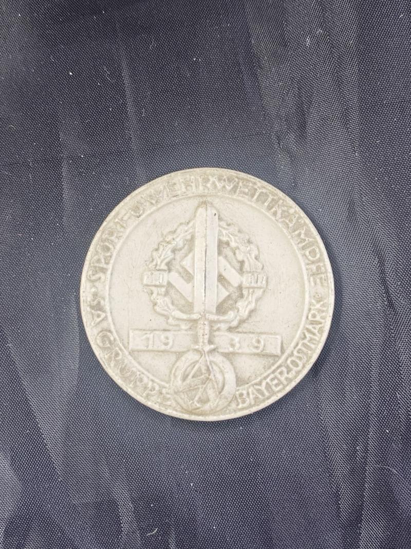This is a WW2 German SA Gruppe Bayer-Ostmark tinnie which unfortunately is missing its pin.