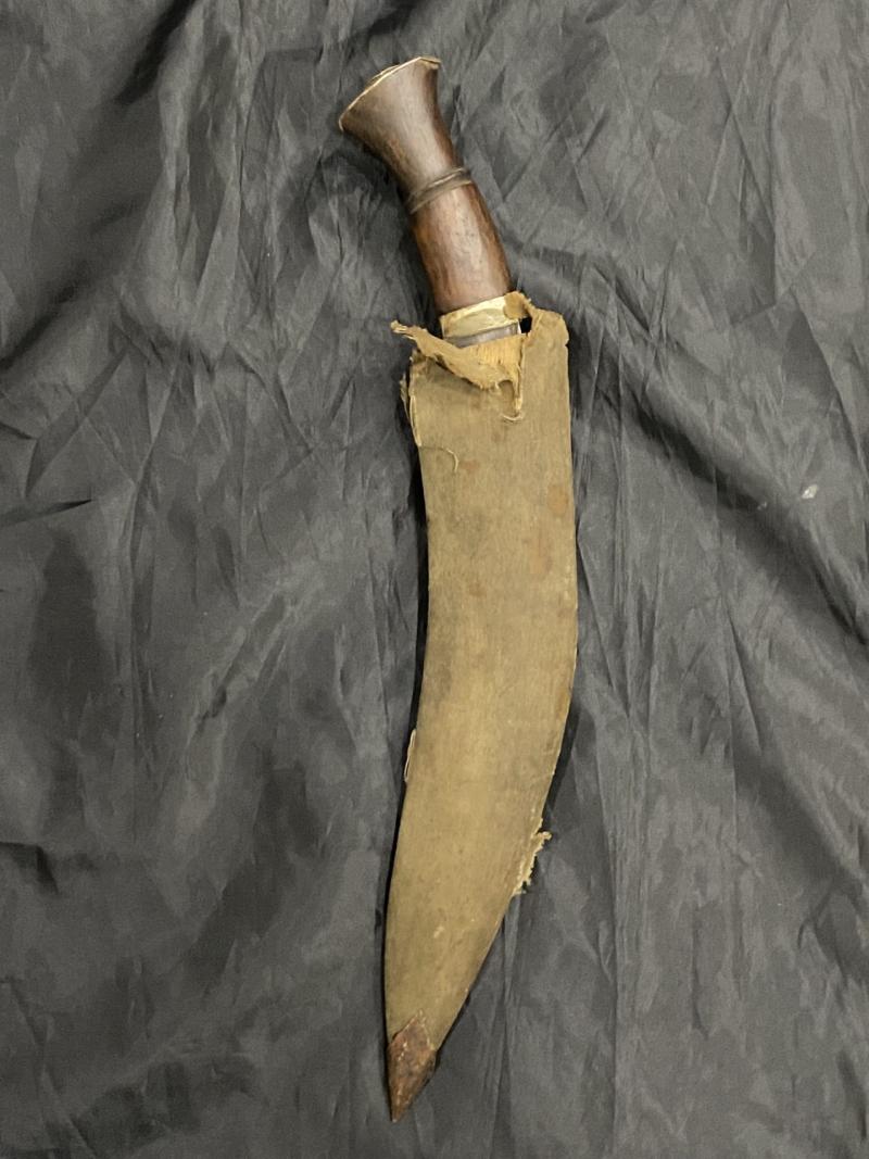 This is a nice Gurkha Kukri Knife with a wooden scabbard which is covered with a cloth material, the blade does have some pitting to it. Age Restricted Item. Proof of age must be provided. U.K. Sales Only.