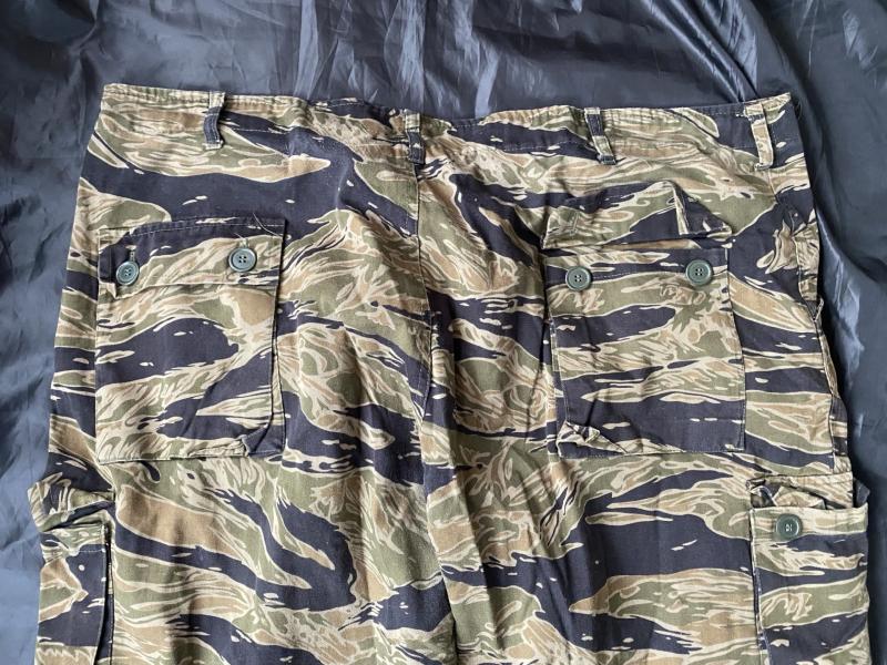 This is a very nice pair of U.S. Vietnam era Tiger Stripe Trousers which are an XXL size.