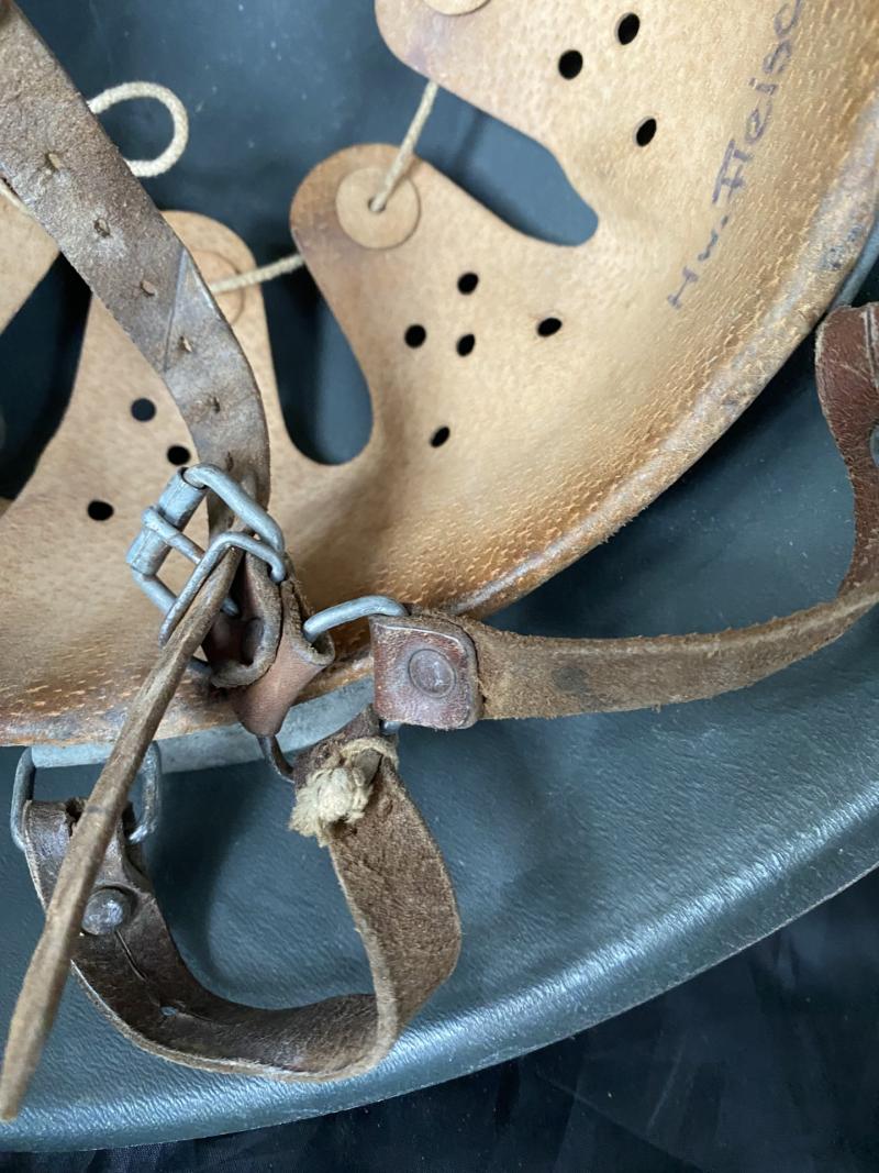 This is a very nice East German DDR M56/76 Helmet which is named inside with Hw.Fleischer, the liner and chin strap are in great condition. Nice type of the Post War Helmets.