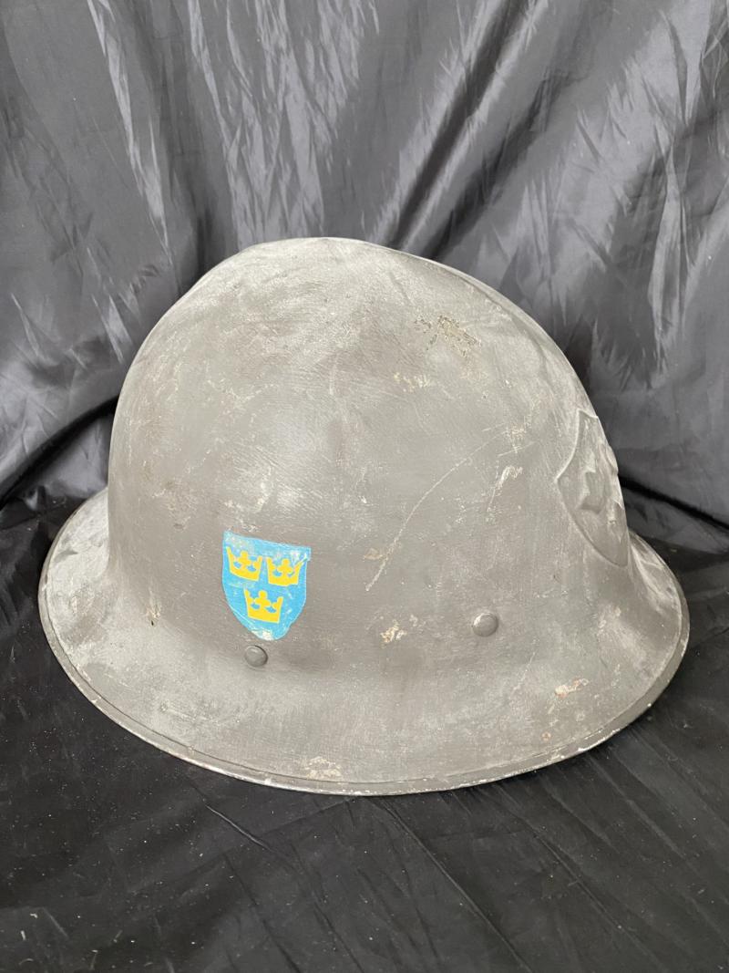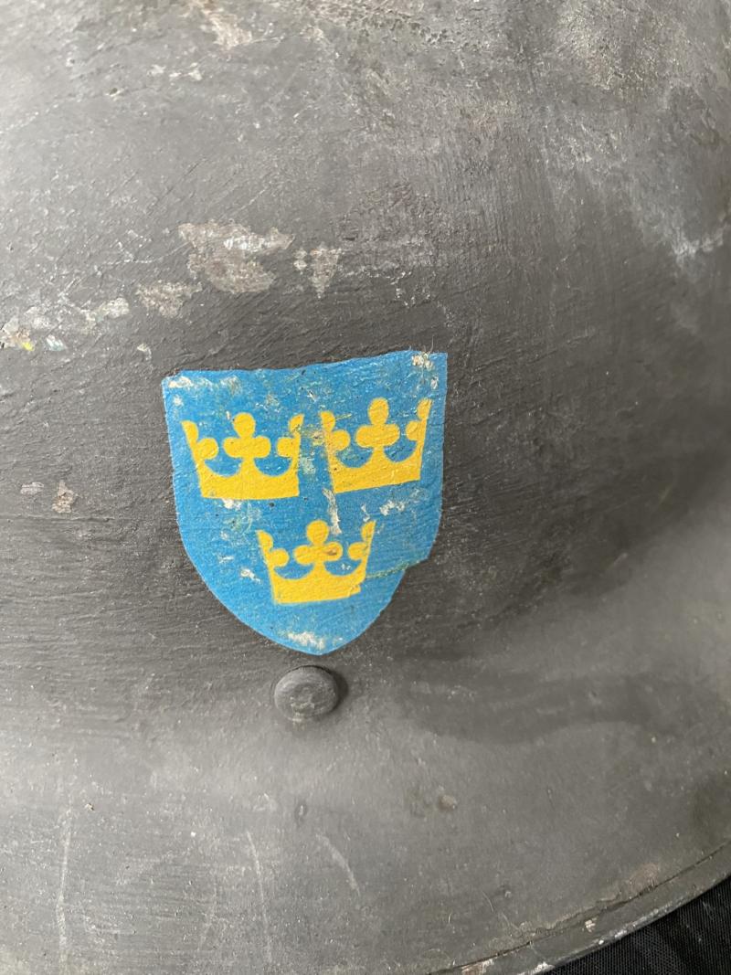 This is a very nice Swedish M21 Helmet with 1940s double decals, fitted with its liner and chin strap, this is a nice helmet to add to the collection.