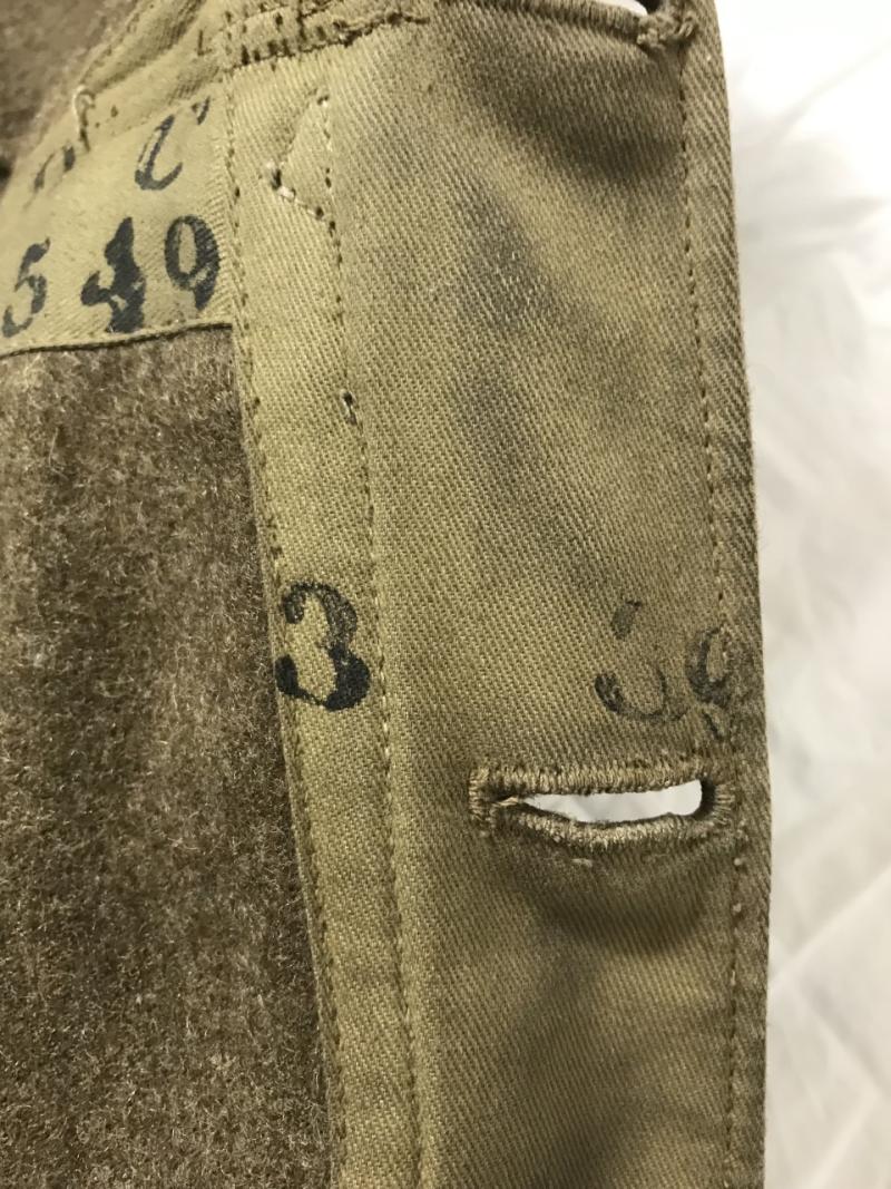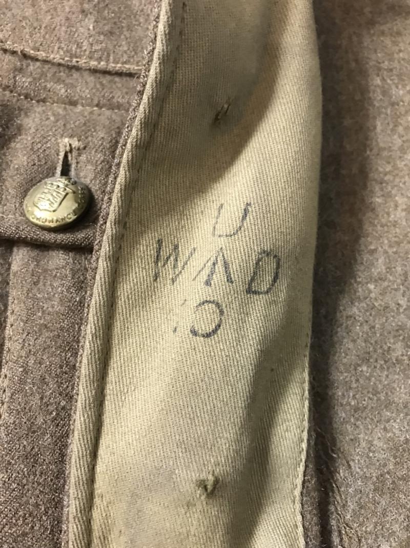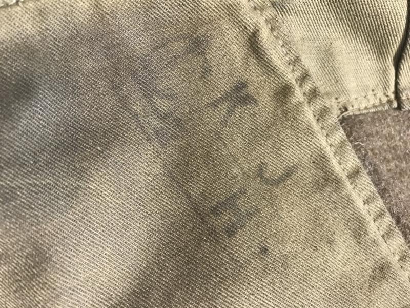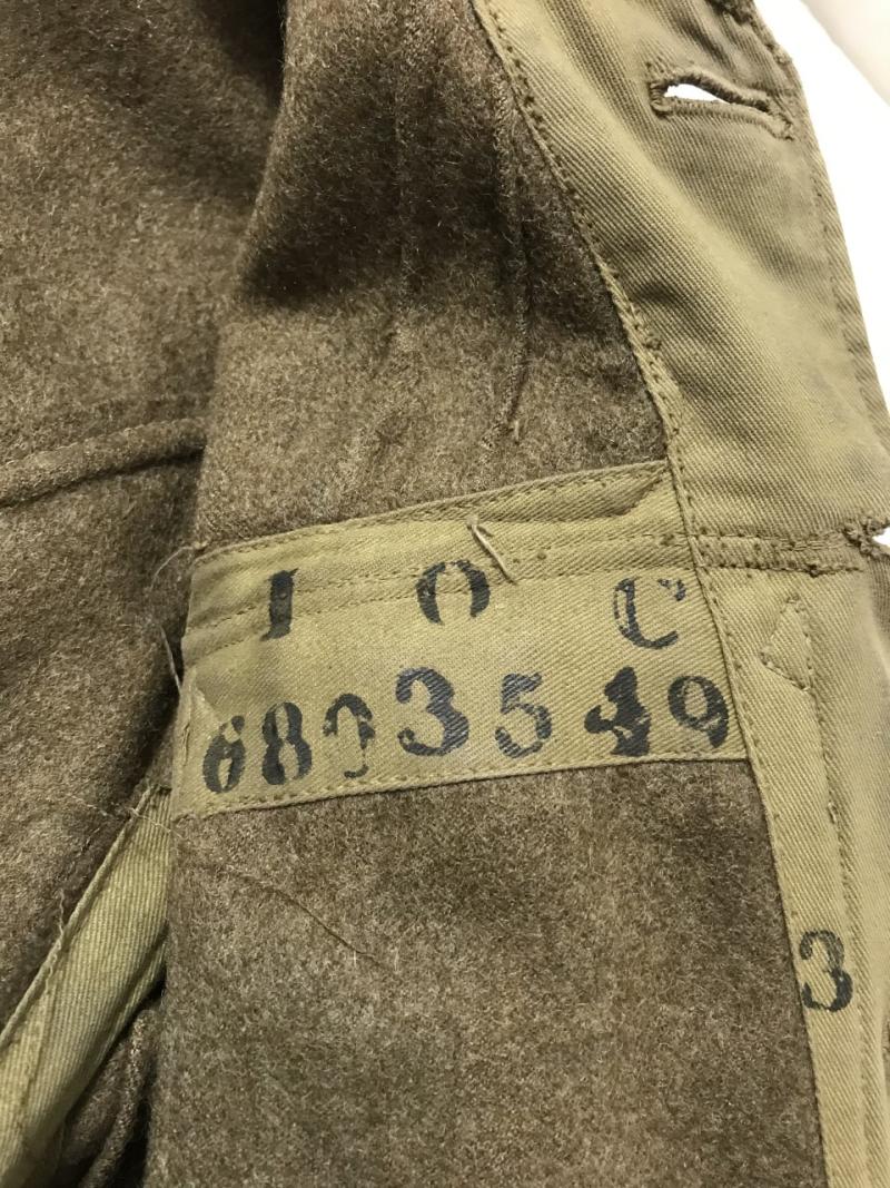 This is a 1922 pattern service dress tunic, which is very similar to the 1902 pattern. The Tunic has the insignia of the Royal Army Ordnance Corps, on the collar and buttons. The Divisional patch is that worn by members of the Eastern Command ( UK ). The rank chevrons is that of a Lance Corporal and has the trade badge for Mechanic, fitter and Armourer. The Tunic has the original owners personal service number and is "WD" stamped with the year acceptance letter code "U" for 1935. The tunic appears to have had a interesting history it is stamped with number of different Regiments "IOC" ( Innes of Court Regiment ), "GH" (Green Howards ).