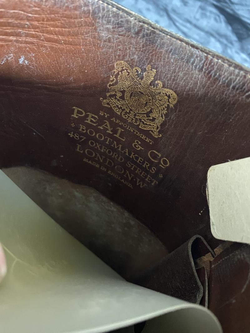 This is a nice pair of WW1 British Officer's Trench Boots, made from Brown leather, they still have there original laces and the soles are pretty good as well, made by Pearl & Co in London and has the stamping on the inside of both boots, I would guess these are about a size 8.