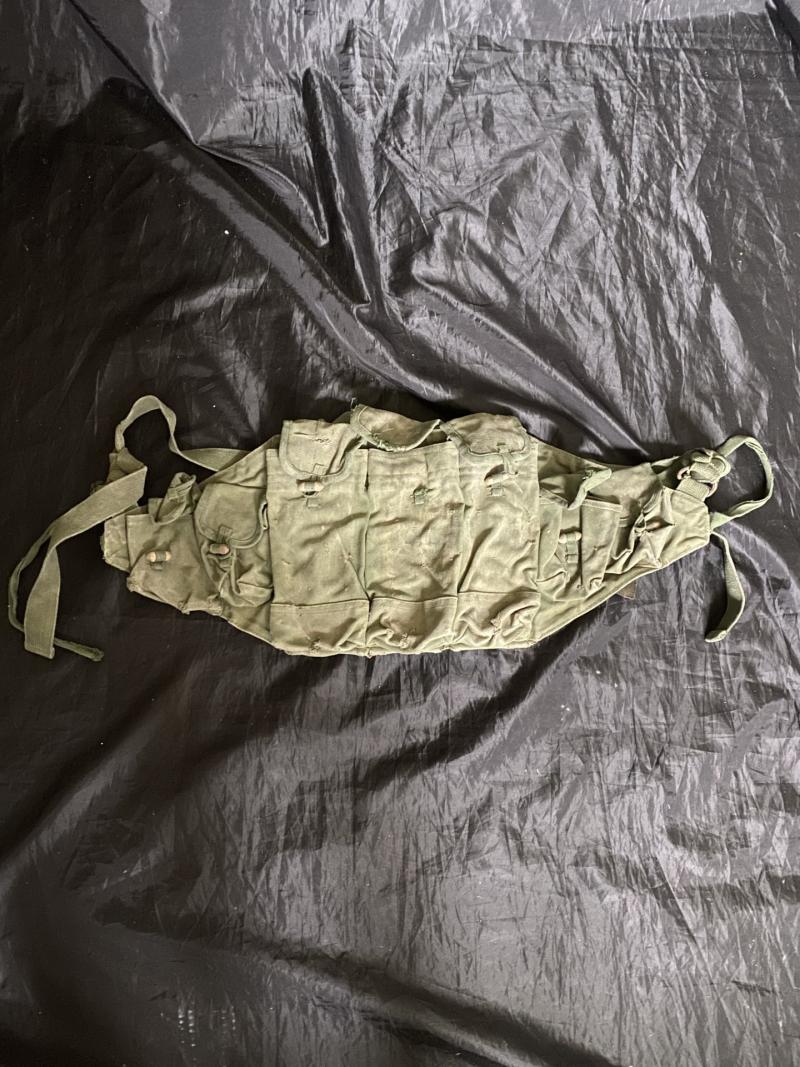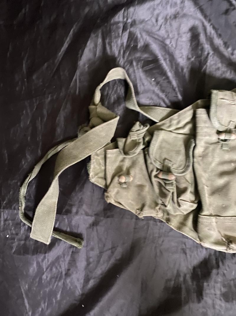 This is a used AK47Assault Rifle chest rig, one of the pouches is missing its toggle to fasten it and also has scripted writing so perhaps Iraqi.