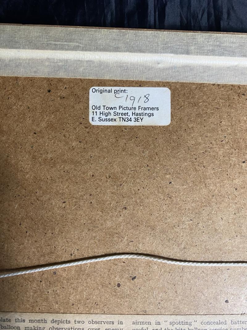 This is a nice framed "Spotting from a Kite Balloon" issued by Boys 1918, Approx. size 7.5" x 10".