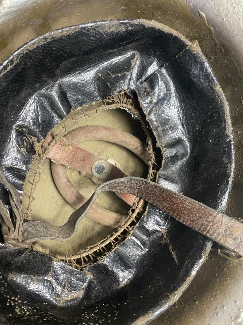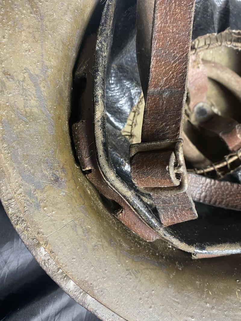 This is a nice WW1 British Brodie helmet which looks to have the stamping FS 55, the lining is incomplete and also fitted with a chin strap.