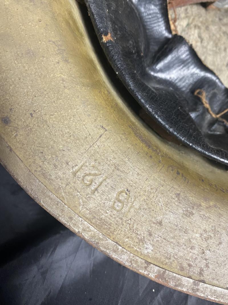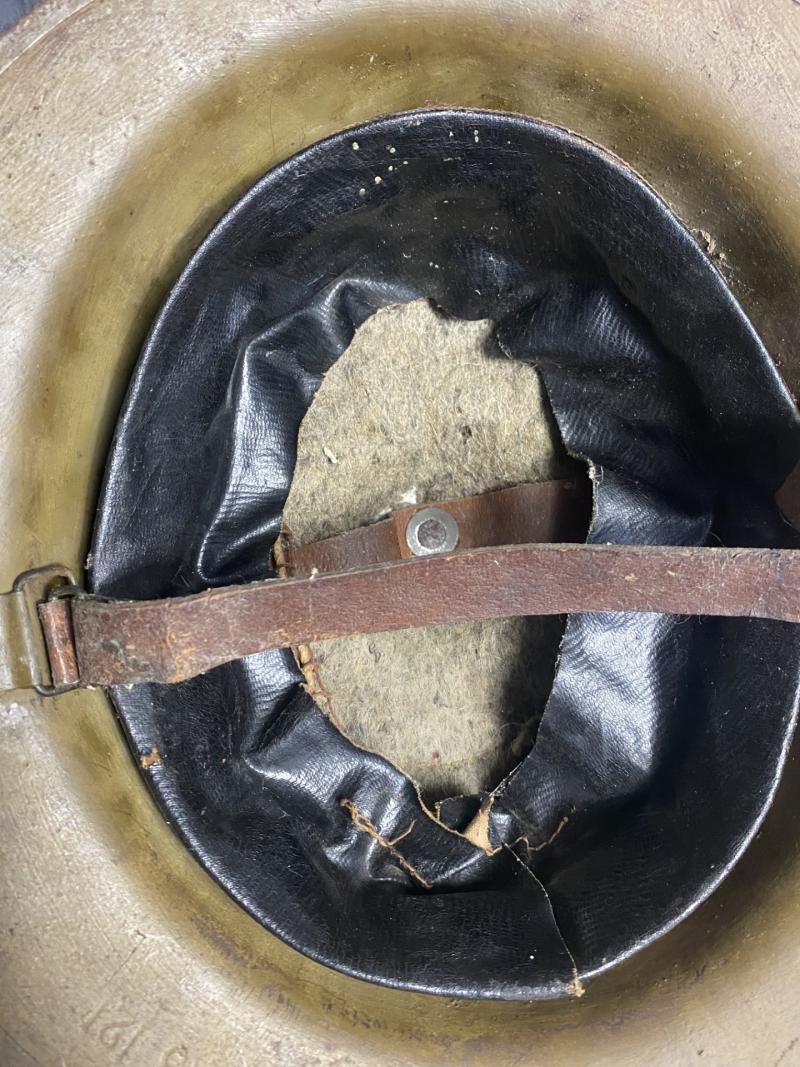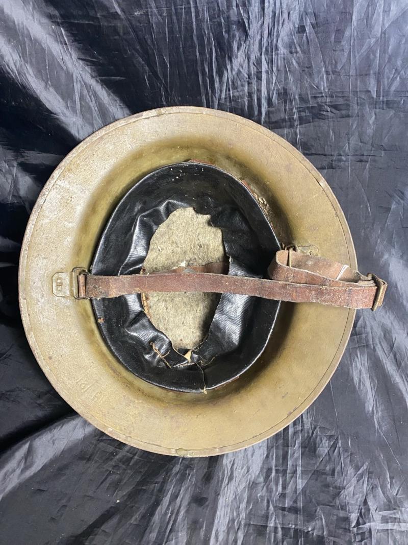 This is a nice WW1 British Mk.II Brodie Helmet with a nice liner and chin strap, this one is marked a size 7, also looks to be stamped HS121.
