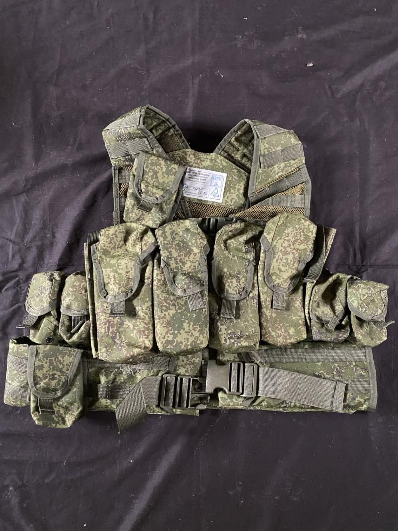 This is a very nice Russian Ratnik Camo Assault Vest/Webbing in un-issued condition, with original labels, one which looks to be dated 2020, complete with 4 x magazine pouches and 6 smaller pouches.