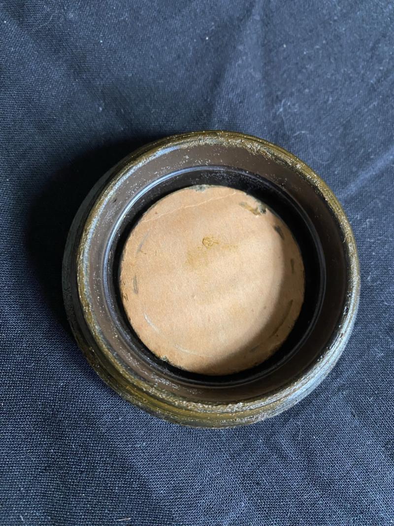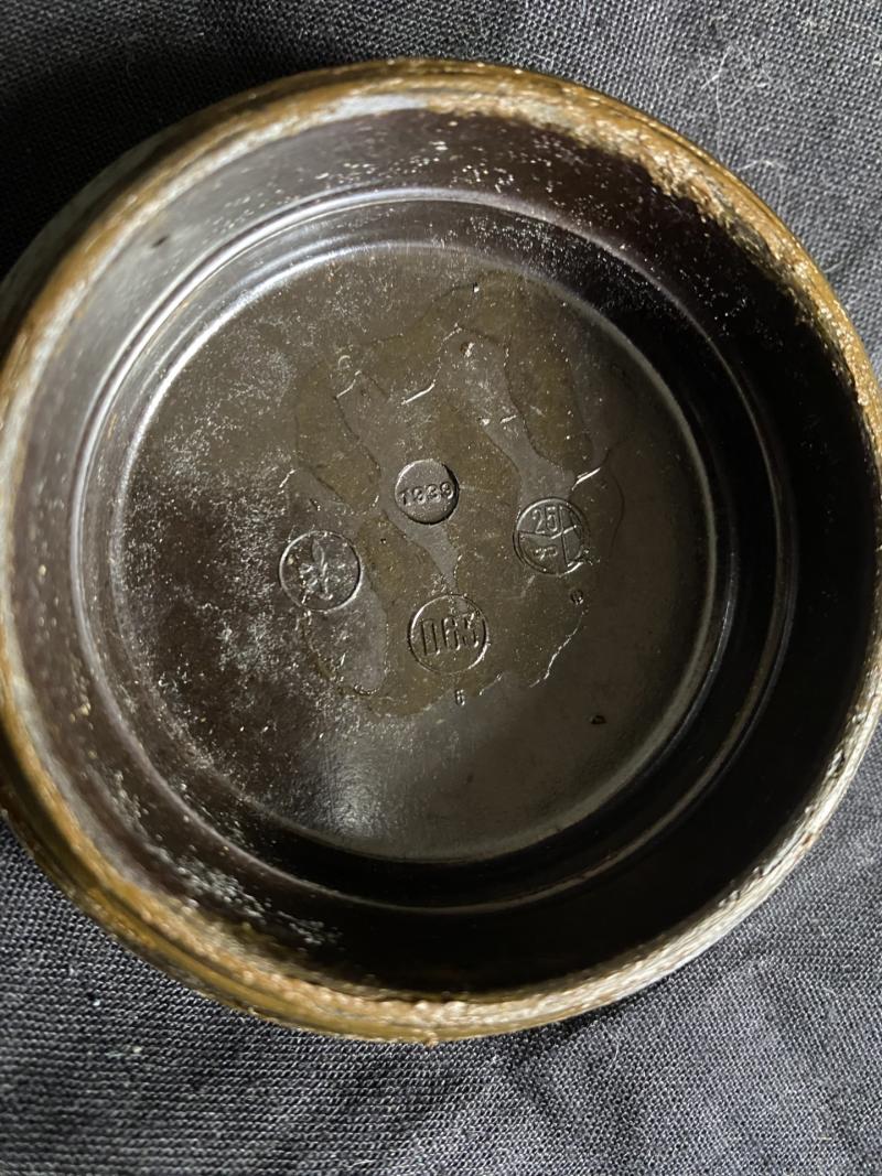 This is a nice WW2 German Bakelite fuze pot which is dated 1939 on the inside of the lid and 1938 on the inside of the container.
