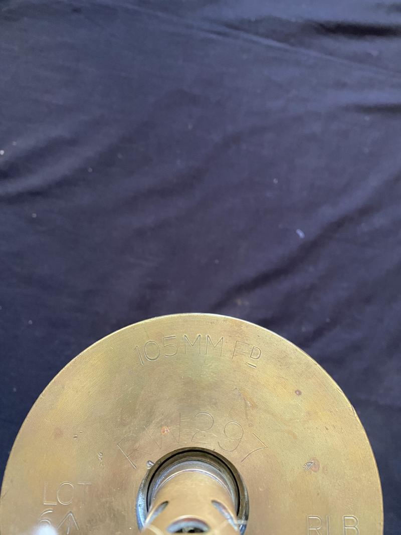 This is a 1975 dated 105mm shell case which looks to have been made into some sort of scoop with the primer acting as the handle.