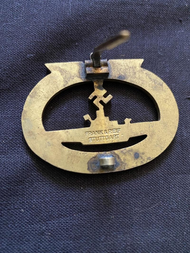 This is a nice reproduction WW2 German Kriegsmarine U-Boat War badge with the makers Frank & Reif Stuggart.