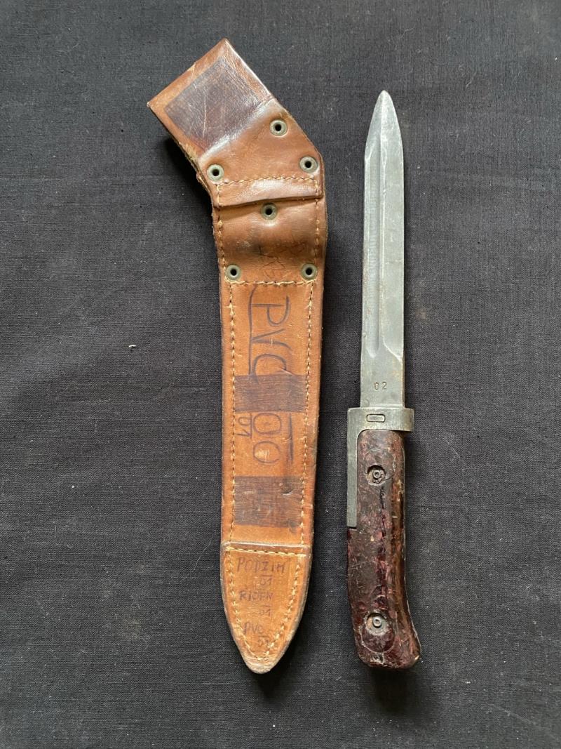 This is a Czech VZ58 Bayonet with its scabbard, the blade has the number T3865 and some writing on the scabbard. Age Restricted Item. Proof of age must be provided. U.K. Sales Only.