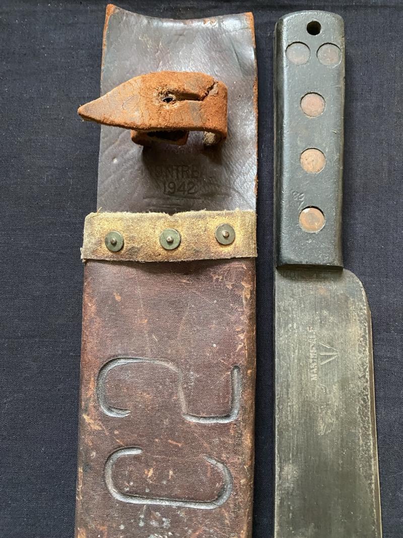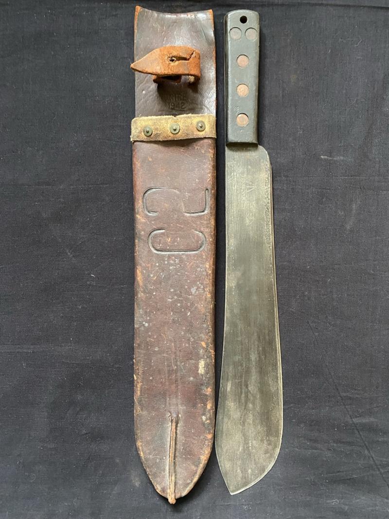 BRITISH ARMY MACHETE WITH A 1942 DATED SCABBARD
