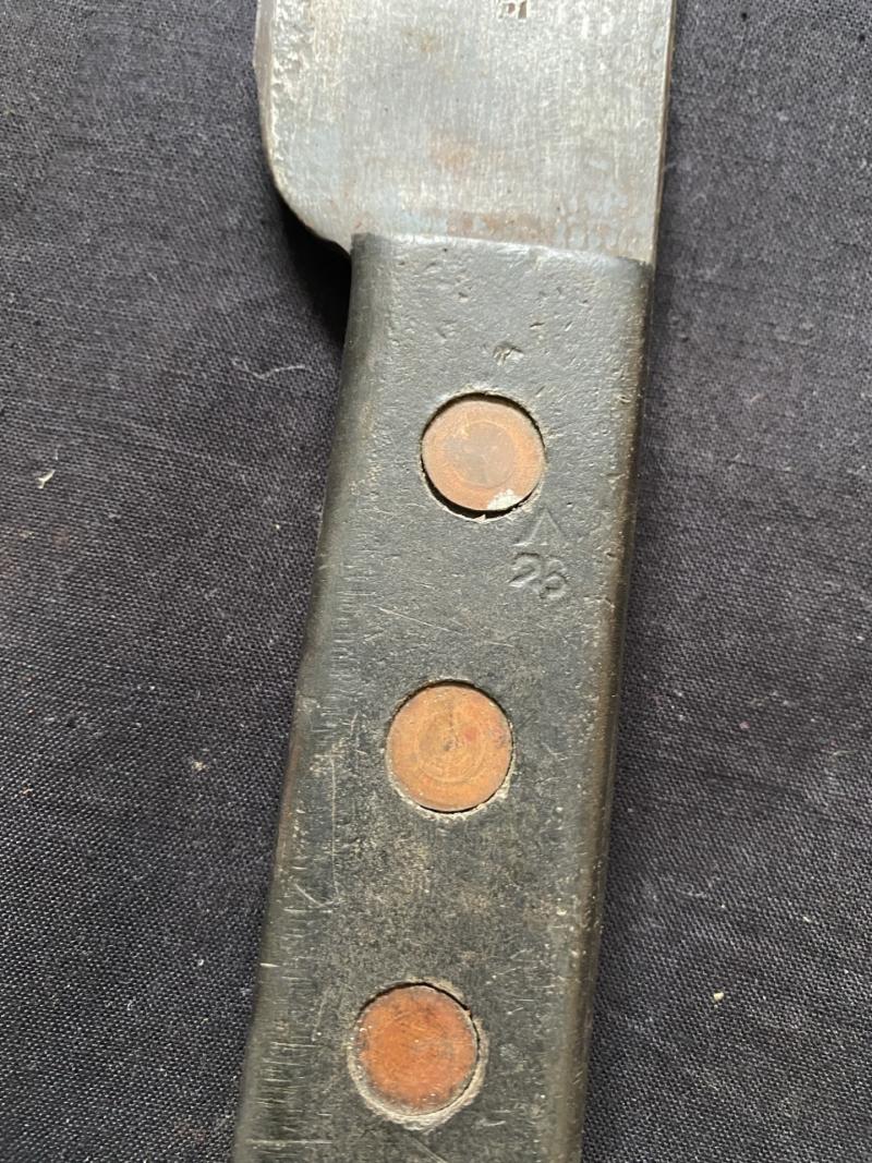 This is a British Army Machete which has the makers stamp and the Broad Arrow stamp, the scabbard is in good condition with the date 1942. Age Restricted Item. Proof of age must be provided. U.K. Sales Only.