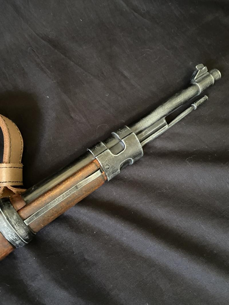 This is a nice replica Denix of the WW2 K98 Rifle with sling which has been aged up slightly, it is able to cock and dry fire. For UK Sales Only. Please email before making purchase.