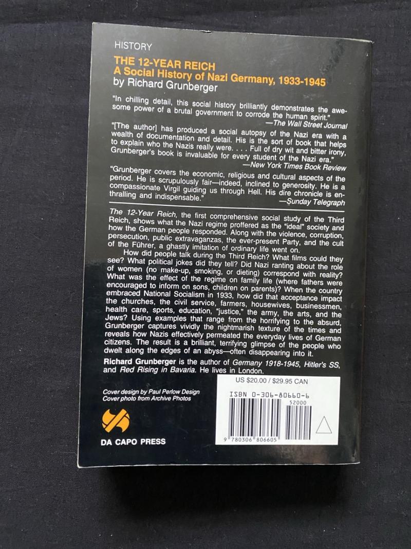 This is a book called The 12 year Reich, a Social history of Nazi German 1933-1945 by Richard Grunberger.