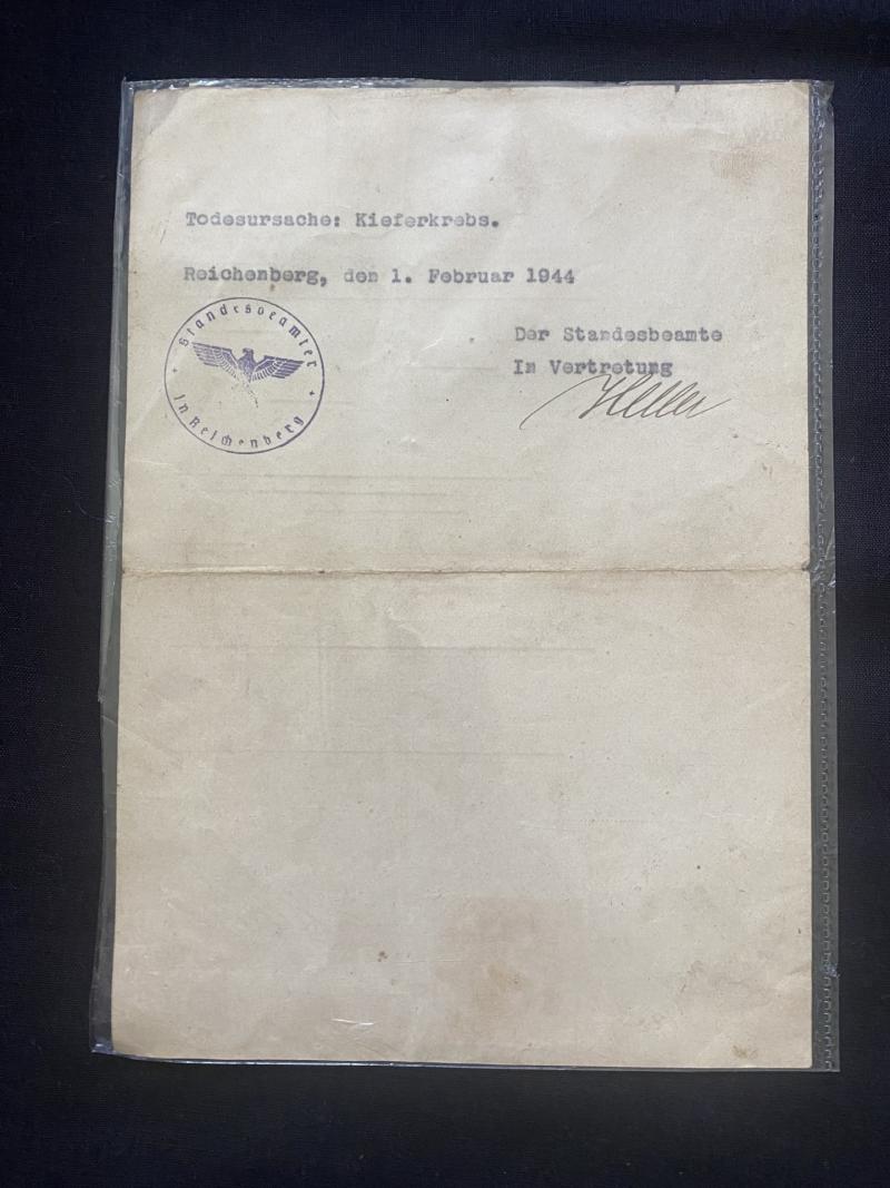 This is a WW2 German Death certificate which is dated 1st February 1944.