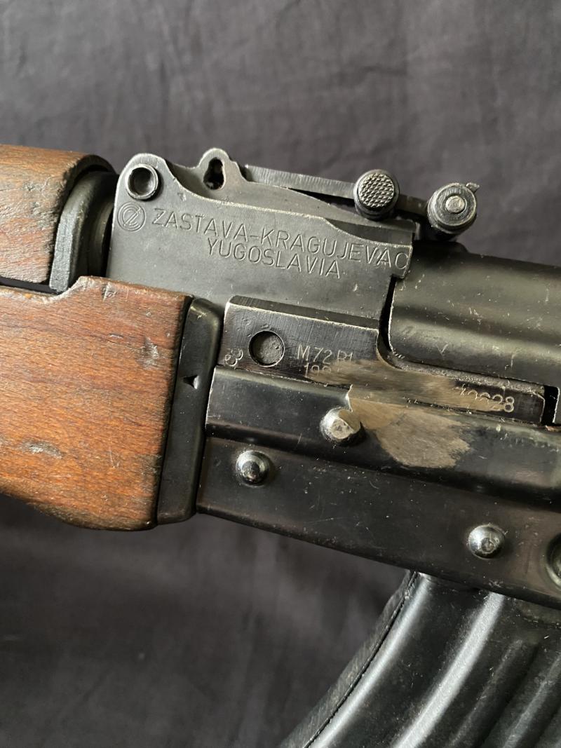 This is a nice deactivated Zastava M72B1 with full matching numbers including the stock, there is what looks like Serbian writing perhaps a name on the stock from the user, the stock is a little wobbly. This one dated to about 1993-1994 from the Yugoslavian Civil War, this one is deactivated to the new eu spec, so it have a moving cocking handle, moving trigger and removable magazine, removable top cover and spring. UK sales only.