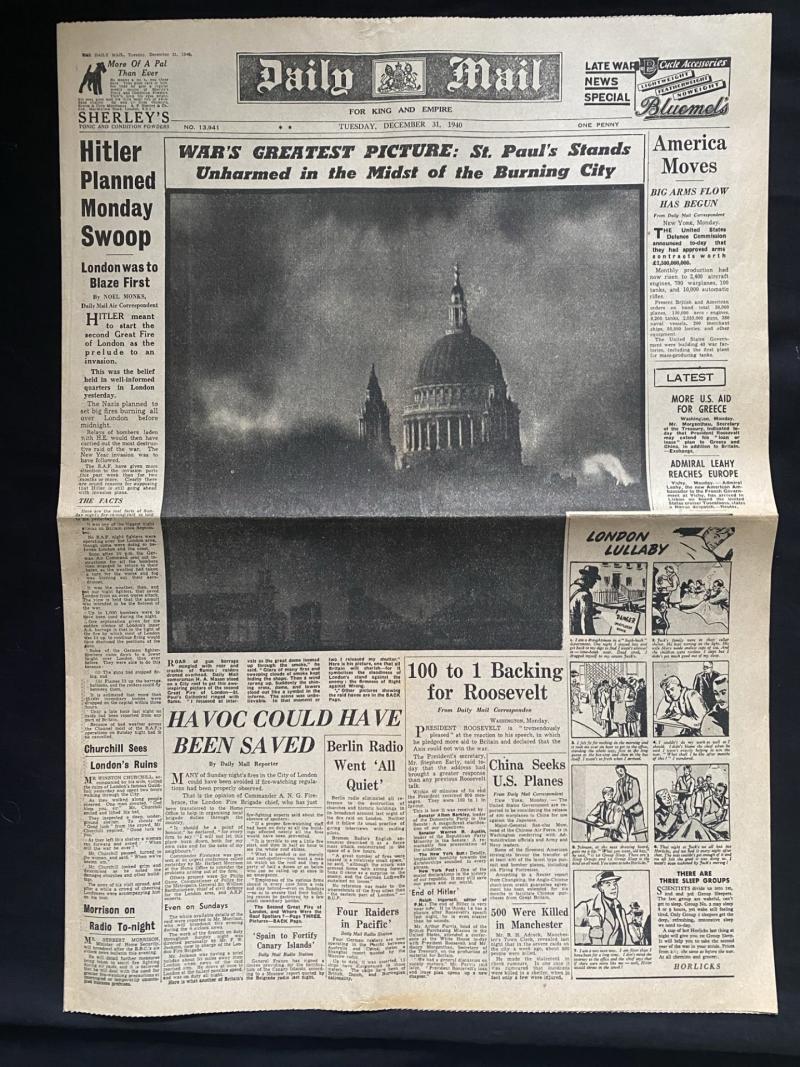 This is a nice WW2 Daily Mail newspaper which is dated Tuesday December 31st 1940.