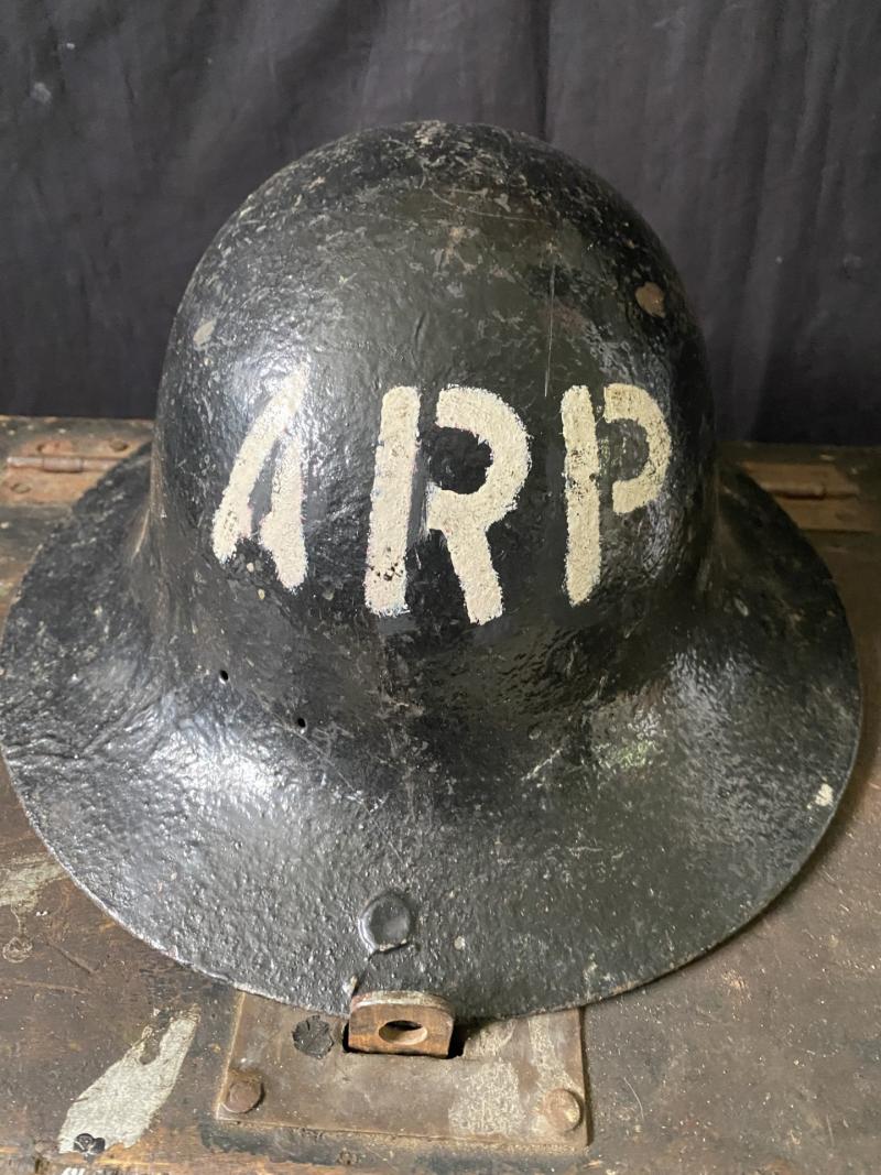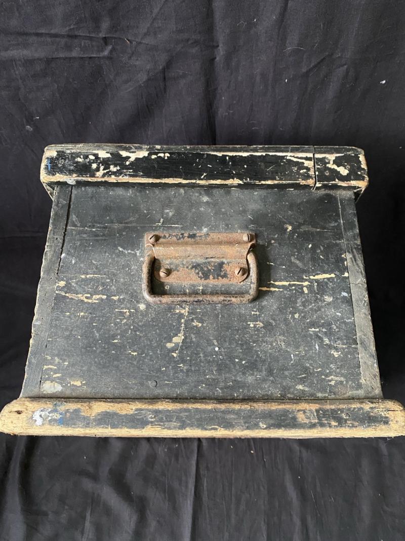 This is a nice WW2 British ARP Wooden box and helmet, the helmet is missing its liner, but would make a nice display piece, the box is in good condition.