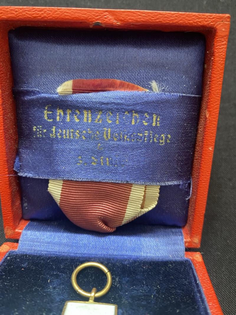 It could be awarded to Germans and foreigners for a wide variety of service to the German state in the social sector. This included service with the Winterhilfswerk, the National Socialist People's Welfare, medical and rescue work, or care of ethnic Germans. It replaced the German Red Cross Decoration.