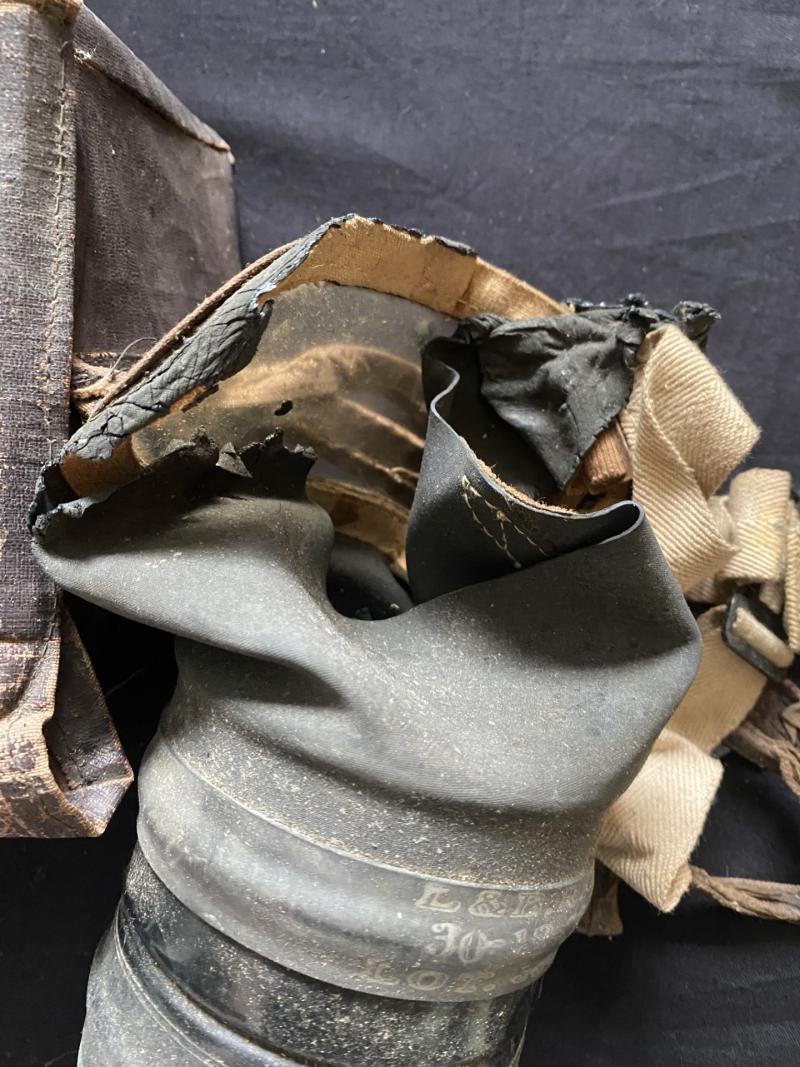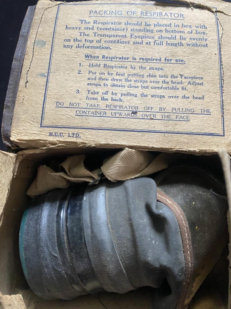 This is a WW2 British Civilian gas mask in its box, the mask itself is in poor condition, the box though is in good condition, ideal for display.