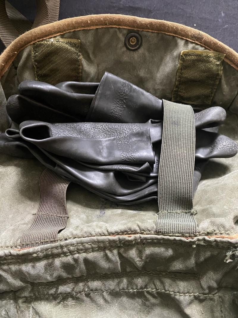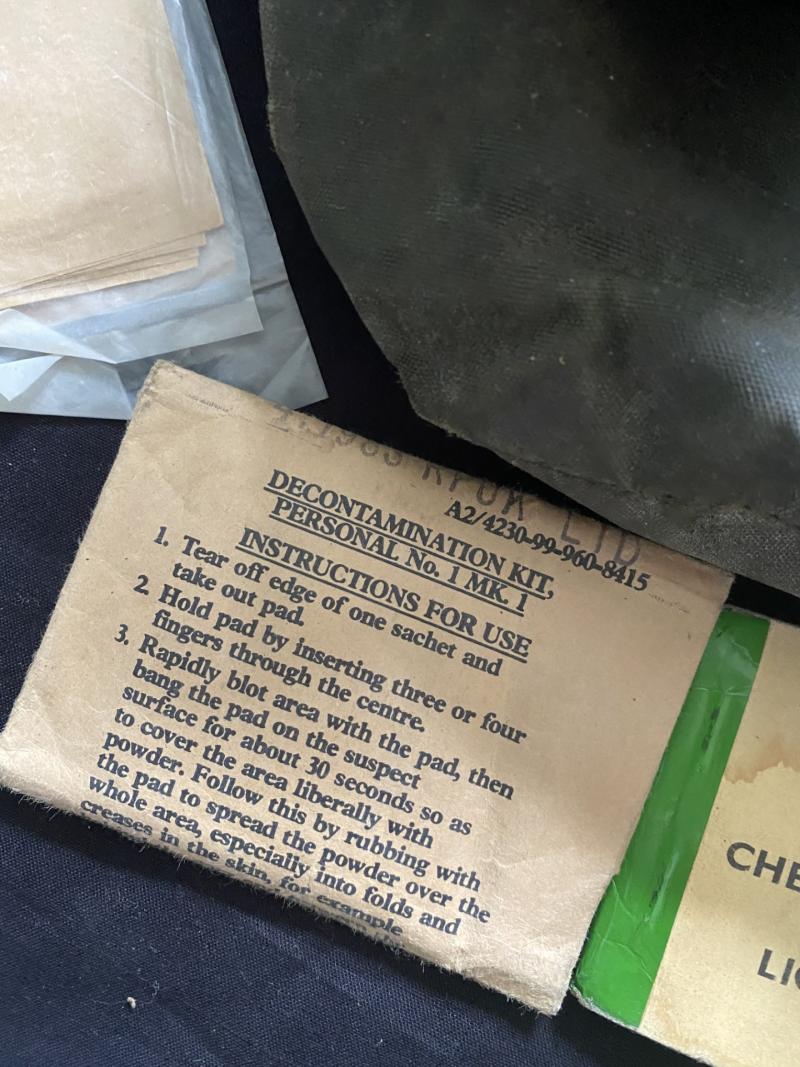 This is a nice British Army S10 gas mask which is a size 3, it also comes with some NBC gloves and the NBC items to decontaminate yourself, as well as a bag. Display purposes only.